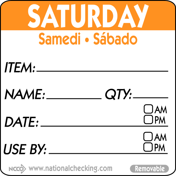 50mm Saturday Removable Day Label (500)