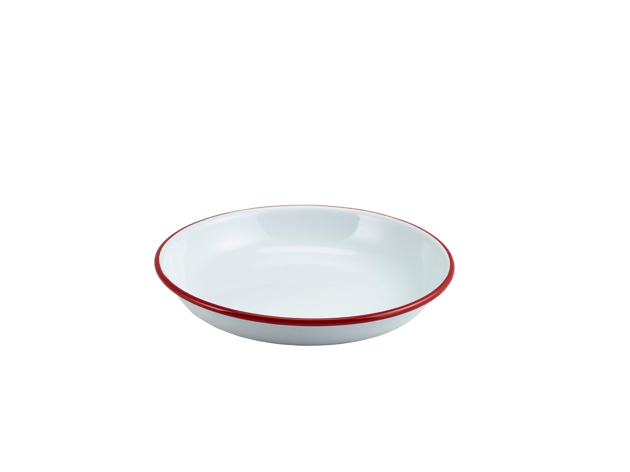 Enamel Rice/ Pasta Plate White with Red Rim 20cm