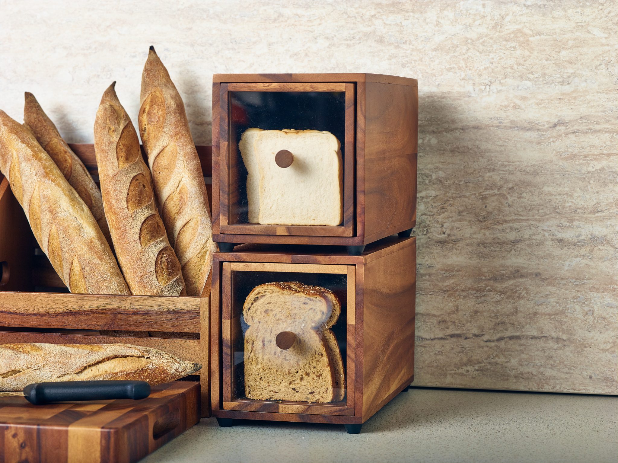The GenWare Acacia Wood Bread Box, a buffet staple, is a fantastic option for storing multiple varieties of breads as part of a hotel’s breakfast buffet offering. The box is made from acacia wood and features an acrylic window for easy visibility of its contents as well as non-slip rubberised feet. Not only bringing stability to work surfaces, the rubberised feet enable the boxes to be stacked atop each other enabling mutliple boxes to be used at once without taking up additional tabletop space.