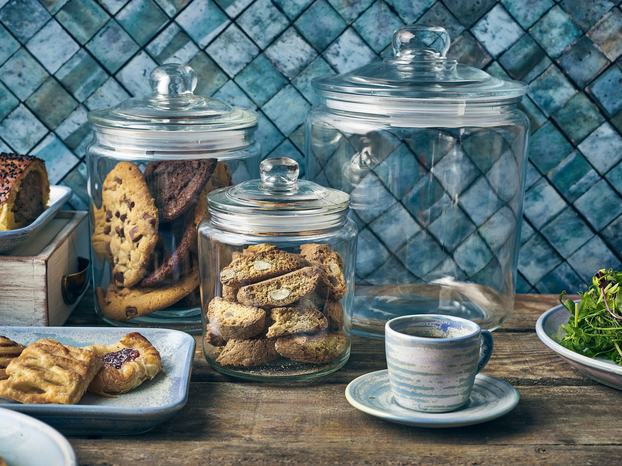 Display biscuits, cereals or sweets inside our heavyweight glass Biscotti Jar, with multiple usages including buffet, as a display unit or as front and back of house storage. The Biscotti Jar gives users easy and quick access to contents while keeping items secure, contained and maintaining freshness thanks to the lids airtight rubber seal.
