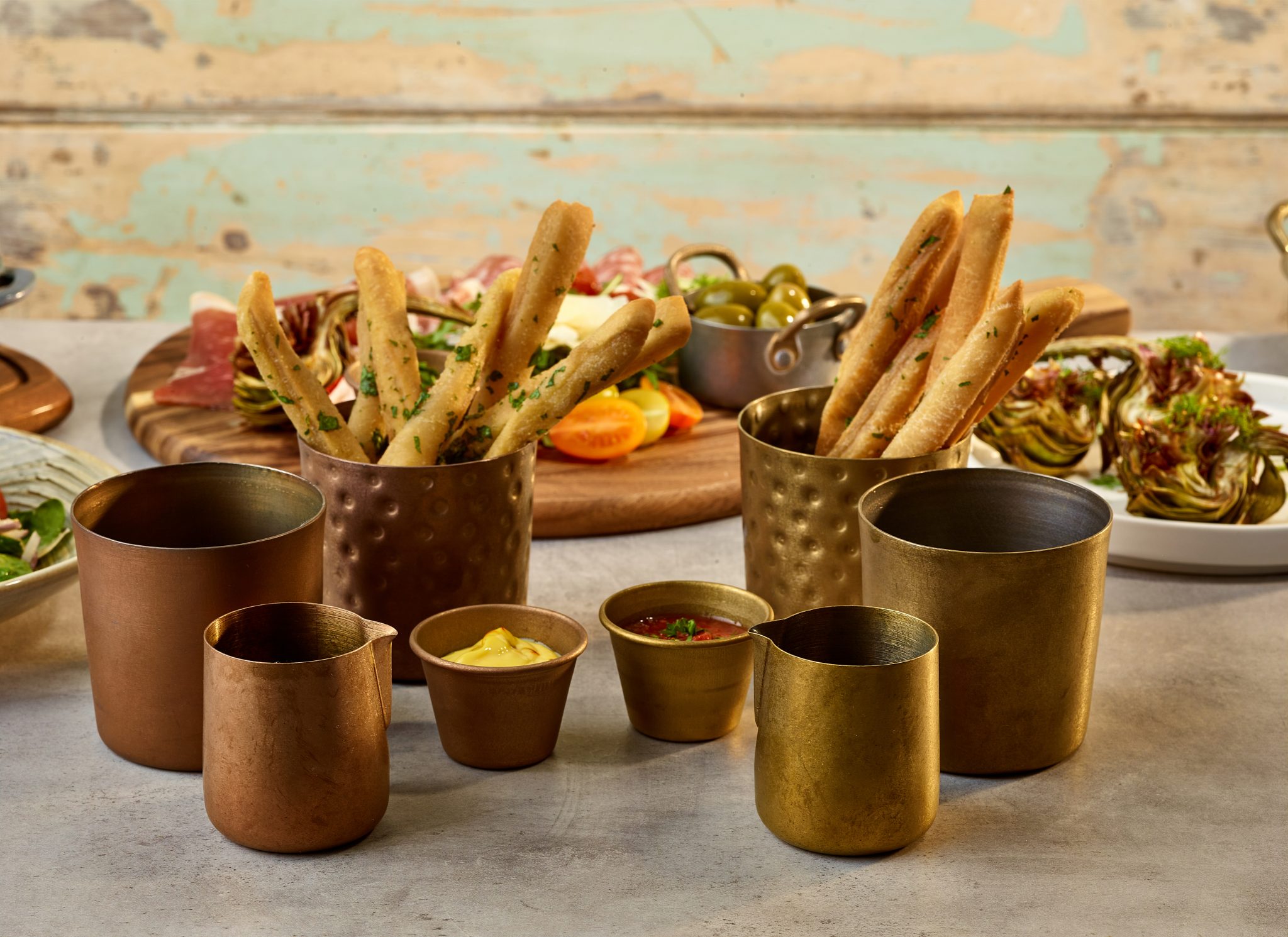 Add a touch of bold, industrial flair to your food presentation with our Gold Vintage Steel Collection. Crafted from high-quality stainless steel with a distinctive gold PVD coating, this collection combines durability and style, offering a unique, vintage-inspired finish that enhances any dish. Perfect for both casual and upscale dining settings, these pieces provide a sophisticated yet rugged look that complements a variety of cuisines.