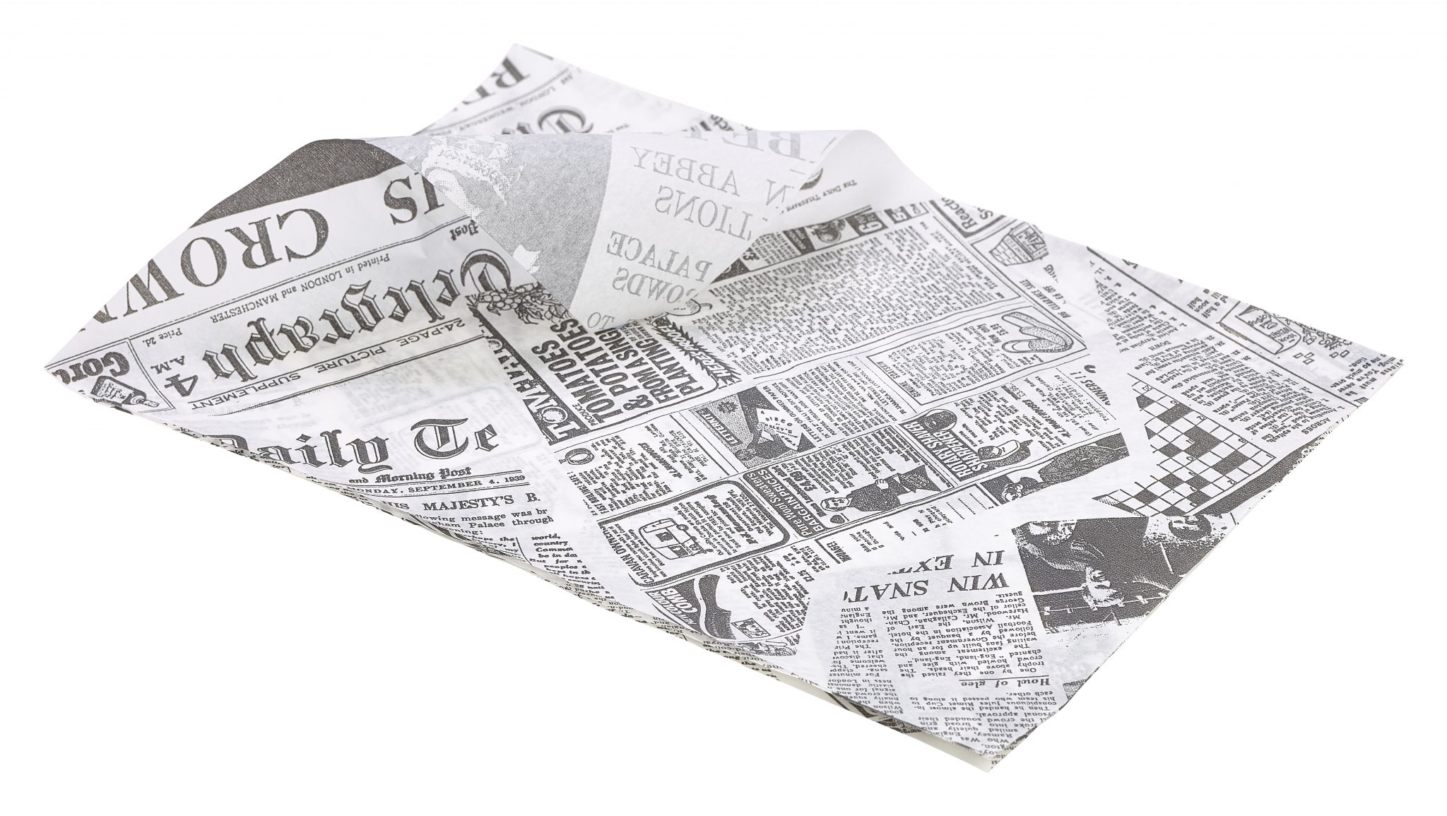Greaseproof Paper White Newspaper Print 25 x 35cm