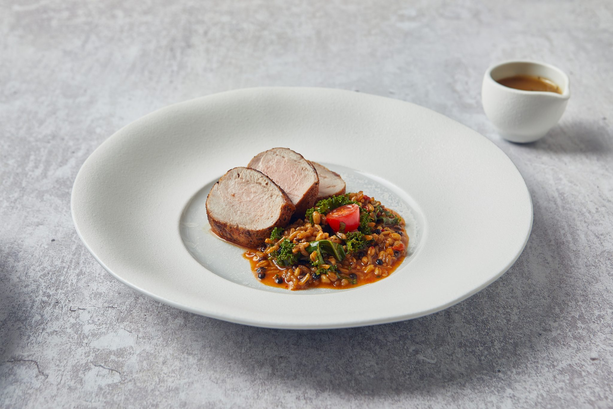 The Incise Porcelain Lustre collection features an elegant series of gourmet dishes, finished with a refined textured matt white glaze for added sophistication. The centre of each plate showcases a stunning reactive pearlescent glaze, creating a captivating focal point. Perfect for upscale settings, this range blends striking aesthetics with practical design, allowing chefs to create visually stunning and memorable presentations for any occasion.