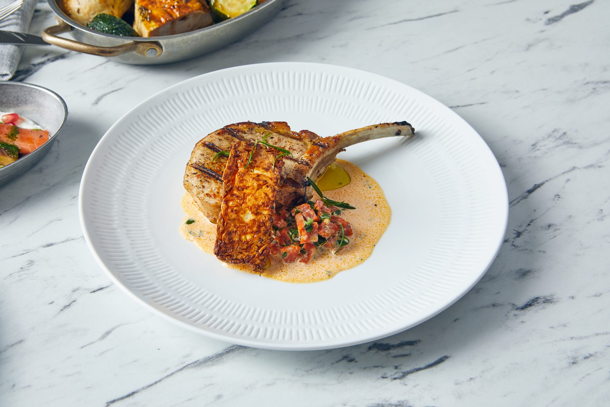 The Incise Porcelain Solara collection features an elegant series of gourmet dishes, adorned with a sumptuous embossed design, adding texture and sophistication to food presentation. Perfect for upscale settings, this range blends striking aesthetics with practical design, allowing chefs to create visually stunning and memorable presentations for any occasion.