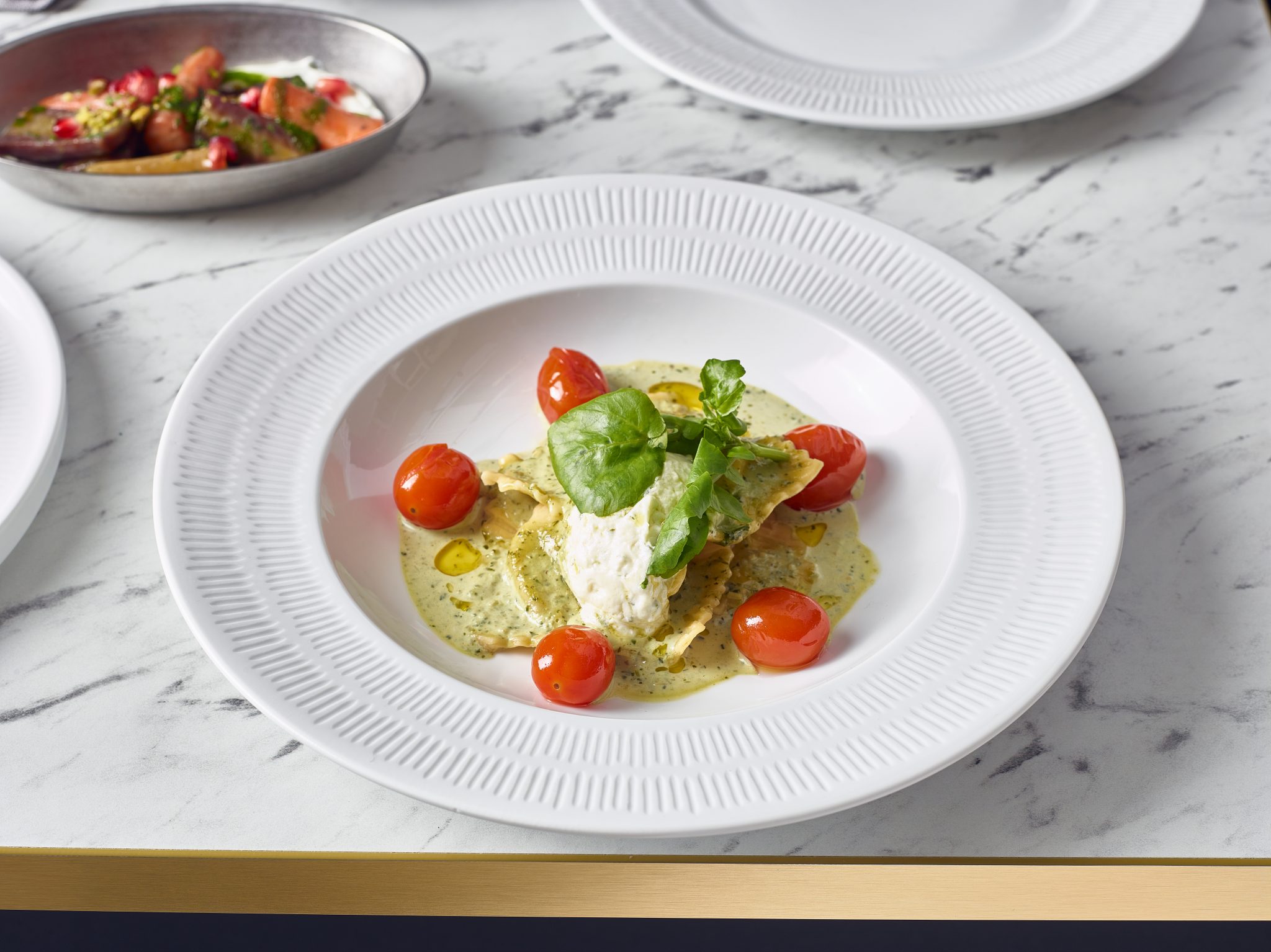 The Incise Porcelain Solara collection features an elegant series of gourmet dishes, adorned with a sumptuous embossed design, adding texture and sophistication to food presentation. Perfect for upscale settings, this range blends striking aesthetics with practical design, allowing chefs to create visually stunning and memorable presentations for any occasion.