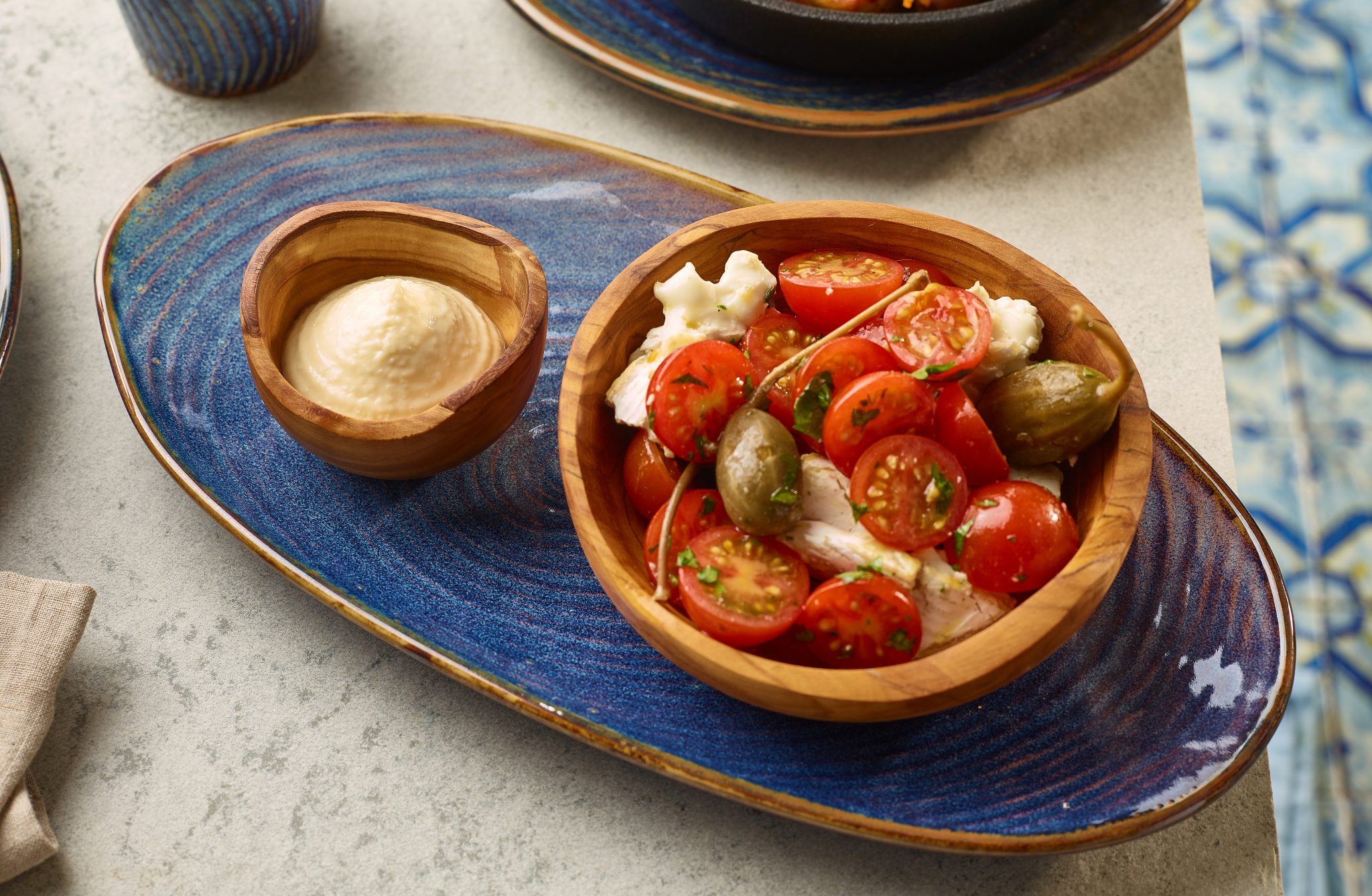 Terra Porcelain’s undefined beauty is crafted through natural effects and spontaneous reactions that occur in the kiln. A unique glaze formula, combined with high-temperature firing, ensures no two pieces look exactly alike, with variations in color intensity creating a truly distinctive appearance. The Organic Aqua Blue Terra Porcelain collection draws inspiration from the depths of the ocean, blending rich and soft blues with natural shapes and textures, while a unique reactive glaze enhances the organic aesthetic to create a stunning and tranquil tableware collection. This range provides the perfect canvas for presenting delicious, vibrant dishes.